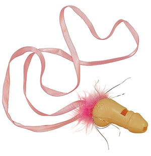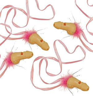 Keep the party going wherever you are! This set of four Willie Necklaces have a pecker whistle accented with pink marabou and silver tinsel. Every time the pecker whistle blows do a dare or take a shot. Have fun with coming up with different activities to do when the whistle goes off. Get them for the attendees of the bachelorette party for a fun party favor.