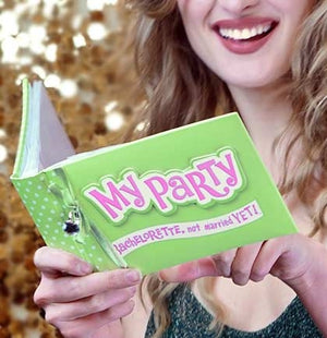 Make memories that will last a lifetime at the bachelorette party! Then keep those epic photos in this "Bachelorette, Not Married Yet!" photo album. Accented with a wedding ring charm on the side. This will be a favorite wedding keepsake.