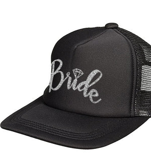 Have a bride who loves to rock a trucker hat? This fun trucker hat has a silver glitter Bride graphic on the front. The trucker hat as an adjustable snapback for any easy fit. The bride can wear this hat while running wedding errands or if there is a low key bachelorette party.