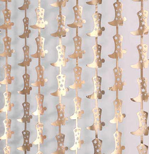 Has the bride found herself Wrangled for Life? Throw her a Last Rodeo Bachelorette Party to celebrate. Create a western backdrop with this fun gold Boot Shaped Fringe Curtain. The curtain has cowgirl shaped boot strands that will look great in party pictures.