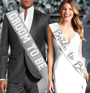 The bride and groom will love these gorgeous satin sashes! The set includes a Bride to Be white sash and a Groom to Be silver sash. Both with no shed lettering in silver and white. The sashes are made with premium quality double-layer satin. The perfect set for them to wear to their wedding parties, engagement party or wedding reception.