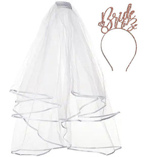 Bride to Be Glam Rose Gold Glitter Headband & White Veil - Set of 2