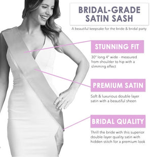 This bride sash is a stunner! The sash says Bride to Be in a rose gold glitter and is accented with a pineapple icon! The bride will love this beautiful keepsake gift! Get this sash to wear to the Bridal Shower or Bachelorette Party!