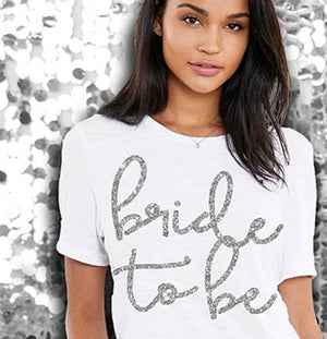 The bride will love wearing this comfy tee at all her bridal parties. The tee says BRIDE TO BE in a pretty silver colored glitter big enough to stand out in the crowd. Get her the shirt as a gift for the bridal shower, bachelorette party or engagement party!
