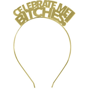 Celebrate Me Bitches Headband & Script Celebrate Gold Banner - Set of 2