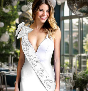 This gorgeous premium quality sash says "Bride to Be" in a elegant rhinestone cursive font. The sash comes with a matching bow clip. Clip the bow onto the sash or the bride can wear it in her hair. The Bride to Be will love wearing this beautiful sash and clip to all of her pre-wedding events! This is the  perfect gift for a bridal shower, bachelorette party, or rehearsal dinner.