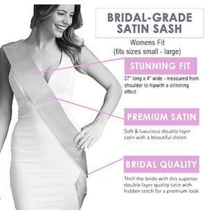 • Bride to Be Sash Size: Fits Small - Large Only (26" long x 4" wide)