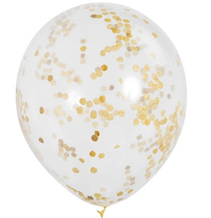 Add a festive touch to any party with these clear balloons with matte gold confetti! The balloons are a fun and inexpensive way to decorate your home, hotel room, car, or restaurant. Use them as an accent to another color or theme. Tie a brightly colored ribbon to the bottom of the balloons or scatter them about as-is. Makes the perfect balloons for bridal showers, bachelorette parties and other wedding festivities!
