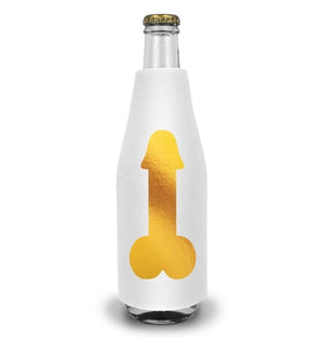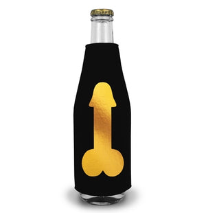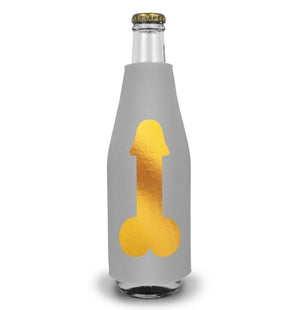This bottle cooler is perfect for a Naughty Bachelorette Party! This bottle cooler has a shiny gold foil pecker graphic. A hilarious keepsake to remember the party!