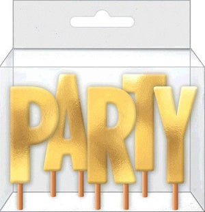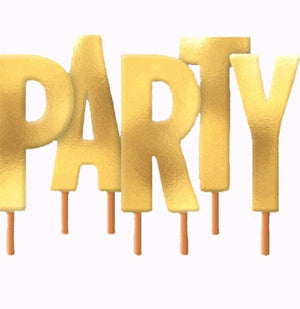 Decorate your cake or cupcakes with these fun PARTY candles. Each gold metallic letter comes on it's own pick and measures two inches tall. It's the perfect addition to any themed bachelorette party.