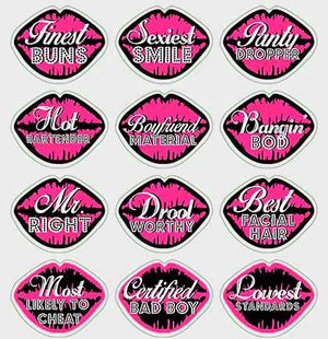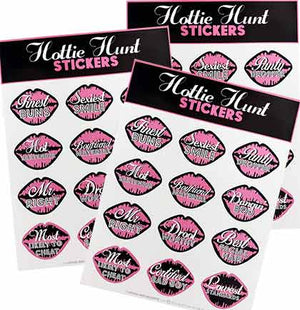 Can you find a man for each sticker? Have fun "labeling" the men you meet at the bachelorette party with these hottie hunting stickers! Get a one of Hottie Hunt stickers for each party attendee and see who can find someone for all of their stickers first. Take pictures of the bachelorette with each man! These fun bachelorette party stickers say, "Drool Worthy," "Certified Bad Boy," "Mr. Right," "Sexiest Smile," and more!