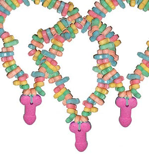 One of our most popular, and requested items, is our naughty candy necklace. This edible Penis Candy Necklace is perfect for the bachelorettes to wear (and eat) at the bachelorette party! This individually wrapped candy necklace comes in assorted pastel colored dick shapes on a stretchy string. Make sure to get enough for all the guests to enjoy. Beware: These are only for dirty bachelorettes--the necklace candies are pecker shaped!