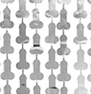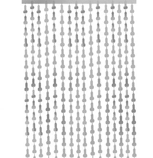 Add some laughter at a Naughty Bachelorette Party with this fringe curtain. This Silver foil fringe curtain has pecker shaped cutouts cascading down! The metallic foil curtain is 6 feet tall and 3 feet wide. Create a fun backdrop with balloons and other décor for guests to take pictures throughout the party.