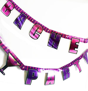 Banners are a great and inexpensive way to add additional flair to your party! This fun 8.75ft long pink and purple metallic letter banner says BACHELORETTE PARTY. Long enough to place on the wall, hang off a table or bar.