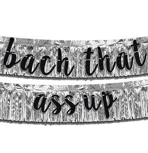 Bach That Ass Up Black Glitter Banner & Silver Fringe Garland - 2pc
