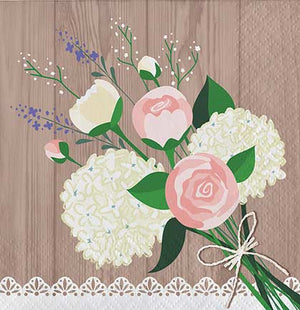 These napkins are perfect for a rustic themed bachelorette party or bridal shower. The cocktail napkins have a natural wood print and feature a floral bouquet and accented with a lace pattern trim. Make sure to get the rest of the Rustic Wedding tableware collection for the party.