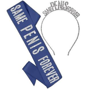 • Set contains: A Glitter Headband and a Luxury Satin Sash with "Same Pen*s Forever" Design in Silver