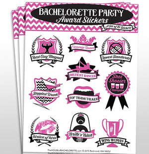 Every Bachelorette deserves an award! Whether she is the "Best Guy Magnet", "The Cleavage Queen" or just the "Flirtiest of the Flirts", reward every Bachelorette with one of these fun stickers! Also great for sticking on gift bags, party favors or cups (not included)!