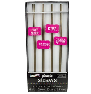 These cool plastic straws will be super fun for a wild night of drinking! The set comes with twelve straws with four each saying HOT MESS, DIVA, FLIRT and DRAMA QUEEN attachments! Take them to a bar, club or use at an at home bachelorette party. Great for a bachelorette party, girls' night in, birthday party, or any other occasion!