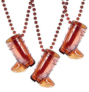 Brown Plastic Western Boot Shaped Shot Glass Necklace