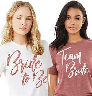 The fun jersey tee says Team Bride in a white glitter graphic on the front! Perfect for the girls who are not in the bridal party or get the whole bridal party to match at the party. Pair this fun tee with our bride and other Glam Bridal Party Shirts for the bachelorette party or bridal shower.