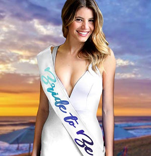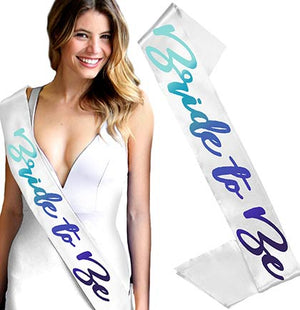 • Bride to Be Sash Color: White with Ombre Blue Lettering