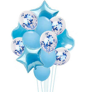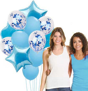 Something borrowed, Something Blue—celebrate the bride with a Something Blue Before I Do bridal shower. Brighten up an indoor or outdoor space with this lovely light blue balloon bouquet. The balloon set includes five light blue round balloons, five light blue confetti balloons, two heart shaped light blue balloons and two star light blue shaped balloons. This timeless theme will make the bride feel truly special.