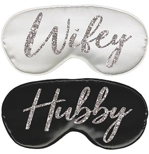 Wifey & Hubby Silver Glitter Sleep Mask Set