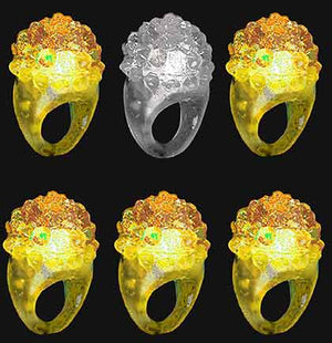 Let's Siesta! These jelly style light up rings will be perfect for a Last Siesta Bachelorette Party goodie bags for the party guests. The rings will light up bright multi-colored lights when pressed. The set of six includes one clear for the bride and five yellow for the bridal party. This flashing ring is must for the bachelorette party! Please note to press hard to get the rings to light up.